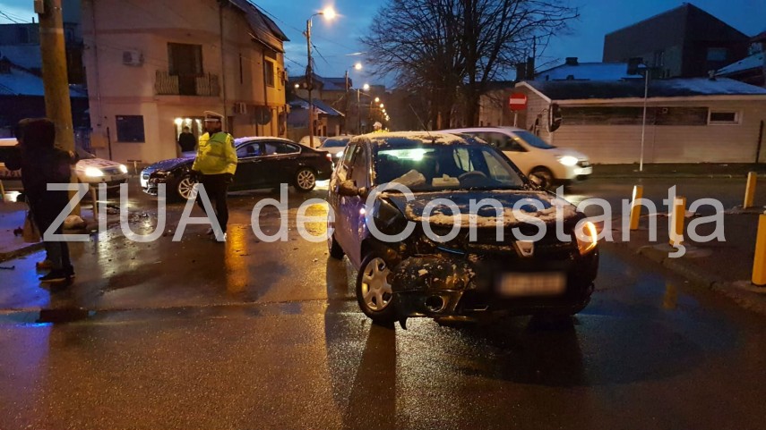 Imagini de la eveniment. Accident rutier în Constanța la intersecția străzilor Nicolae Iorga cu Mihai Viteazu.
