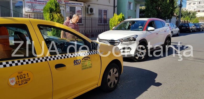 Un accident rutier a avut loc în această după amiază la intersecția străzilor Farului cu BP Hasdeu din Constanța. Din primele informații în accident a fist implicat un taxi și un autovehicul Hyundai de culoare albă.