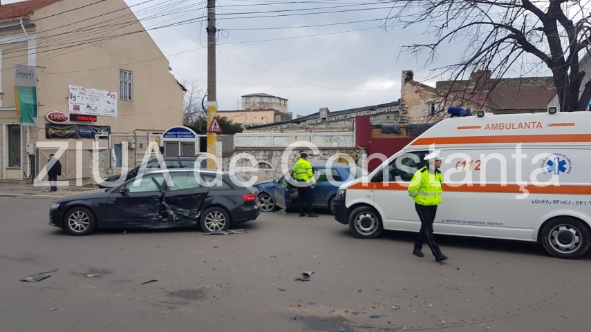 UPDATE: Oficial de la IPJ Constanța. La data de 27 martie a.c., în jurul orelor 15:30, un bărbat, în vârstă de 38 de ani, a condus un autoturism pe strada I.G. Duca, iar în dreptul intersecției cu bulevardul Mamaia, pe fondul neacordării de prioritate de trecere, a intrat în coliziune cu un autoturism, condus de un bărbat, în vârstă de 33 de ani. În urma accidentului rutier, a rezultat vătămarea corporală ușoară a pasagerei din al doilea auto, în vârstă de 1 an.