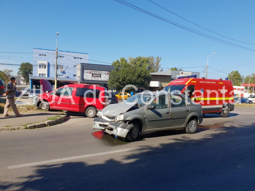 Imagini de la eveniment. Accident rutier pe strada IL Caragiale din Constanța. Două autoturisme implicate și două persoane rănite (galerie foto + video)