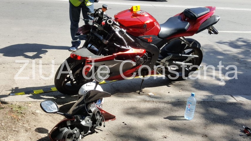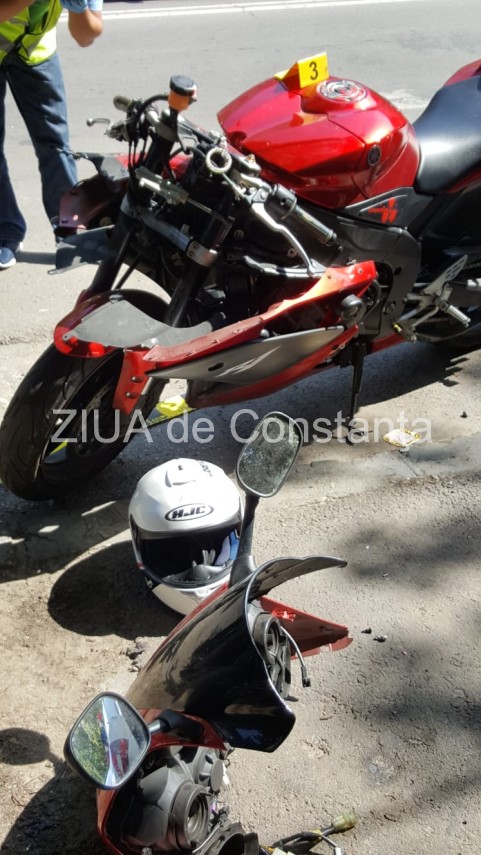 UPDATE. Imagini de la eveniment. Accident rutier pe strada IL Caragiale din Constanța. Un motociclist a fost rănit