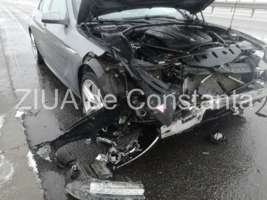 Prima ninsoare face victime în județul Constanța. Un autoturism BMW seria 6 a fost serios avariat astăzi după ce, din cauza carosabilului umed șoferul a pierdut controlul volanului și a intrat în parapet. În urma impactului destul de violent autoturismul a fost avariat în partea din față și a fost nevoie de intervenția unei mașini de tractare pentru ridicarea acestuia de pe autostradă.