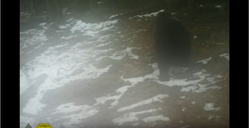Imagini din România. Urs ieșit din hibernare surprins de camerele de monitorizare (foto+video)