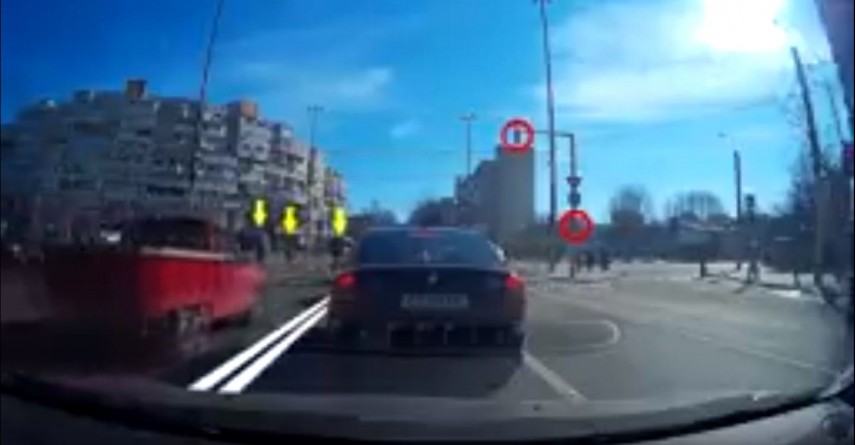 Incidentul a fost surprins de camera video amplasată la bordul unui autoturism ce staţiona la semafor şi au fost postate pe internet.
