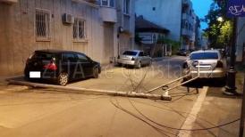 Imagini LIVE de la eveniment:Stâlp căzut pe strada Ștefan cel Mare, lângă Policlinica cu Plată. Incidentul