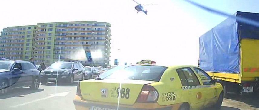 Imagini noi cu elicopterul care era să rateze decolarea. Cât pe ce să accidenteze turiștii de pe faleza din Mamaia. Zeci de obiecte zburătoare (galerie foto+ video)