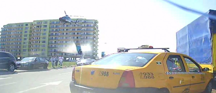 Imagini noi cu elicopterul care era să rateze decolarea. Cât pe ce să accidenteze turiștii de pe faleza din Mamaia. Zeci de obiecte zburătoare (galerie foto+ video)