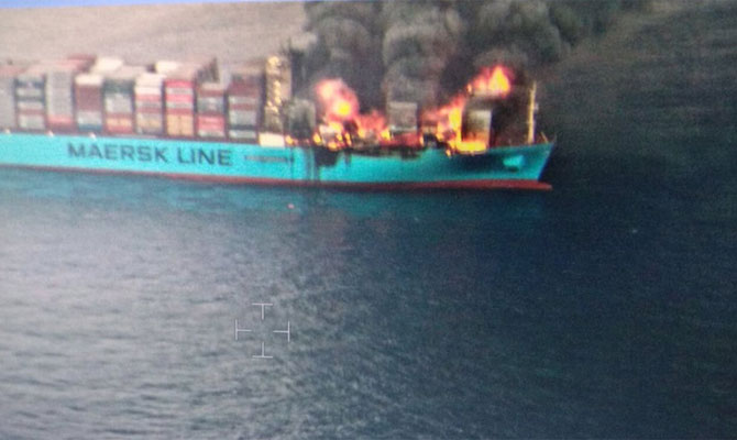Reamintim că, un incendiu de amploare a cuprins una dintre cele mai mari şi mai moderne nave port container, Maersk Honam, sub pavilion Singapore, la bordul căreia se afla şi un marinar român. Incendiul s-a produs în Oceanul Indian/Marea Arabiei la 900 de mile de Salalah/Omana. Nava a plecat din Singapore către canalul Suez Incendiul este încă în desfăşurare şi există temeri de poluare.