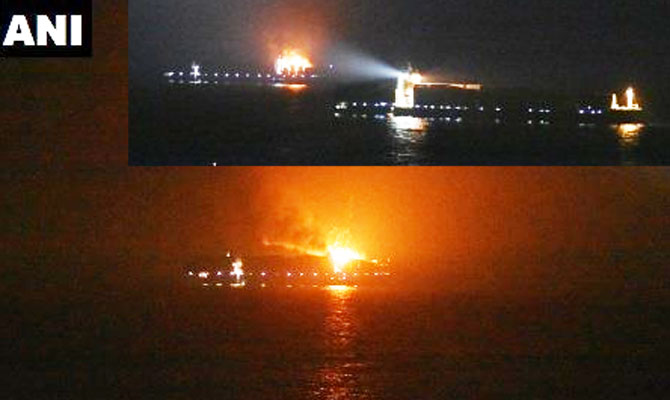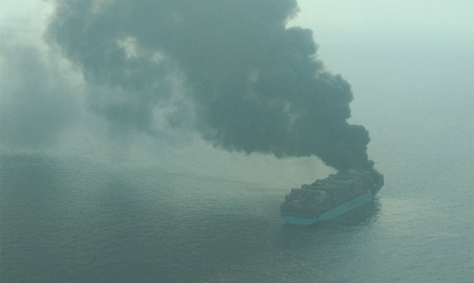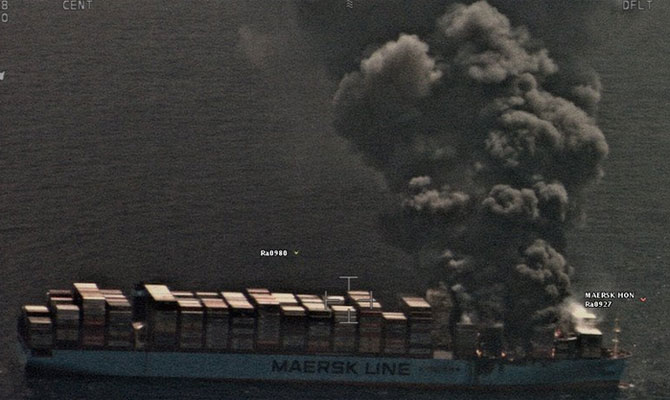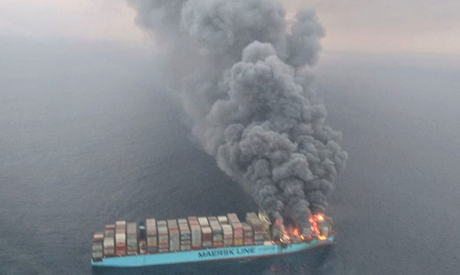 Imagini şocante. Incendiu violent în larg. O navă port-container a fost cuprinsă de flăcări. Unul dintre marinarii salvaţi a decedat (galerie foto)