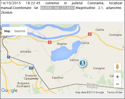 Epicentrul a fost localizat la intersecţia coordonatelor 44.05/lon 27.48 în zona localităţilor Gârliţa-Cuiugiuc.