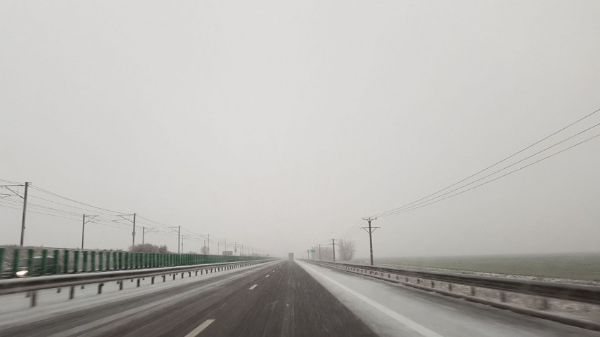 Pe Autostrada Soarelui a început să se aşterne zăpadă.Potrivit meteorologilor, în Dobrogea vor fi precipitații sub formă de ploaie, lapoviță și ninsoare, izolat mai însemnate cantitativ, în jur de 15…20 l/mp, și se va produce polei.
