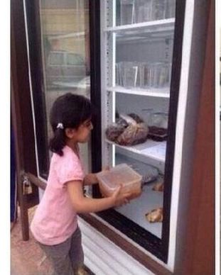 Ideea nu este una românească. Ea a pornit anul trecut, din Arabia Saudită, unde o persoană privată a amplasat un frigider în faţă propriei case. Ideea a fost considerată însă foarte bună astfel că a fost imediat preluată imediat în Spania, iar acum în România.