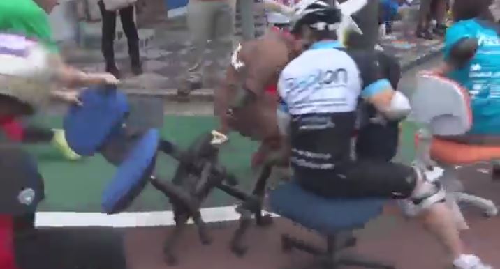 傻的嗎!日本辦公椅子比賽【激鬥戰車】傻的嗎!日本辦公椅子比賽來自日本京都京田邊市的攪笑比賽,商店街店主為了增加人氣,所以舉行了比賽炒熱街道,聽講今年4月更會去到台南玩!真係笑死無命賠呀!影片:https://goo.gl/PYw6Zq #新假期生活================================【日本美食】日本超抵買零食福袋!1000日圓志村商店地址詳情:www.weekendhk.com/?p=201949全港最強日本旅遊推介連結:http://www.weekendhk.com/category/japan/