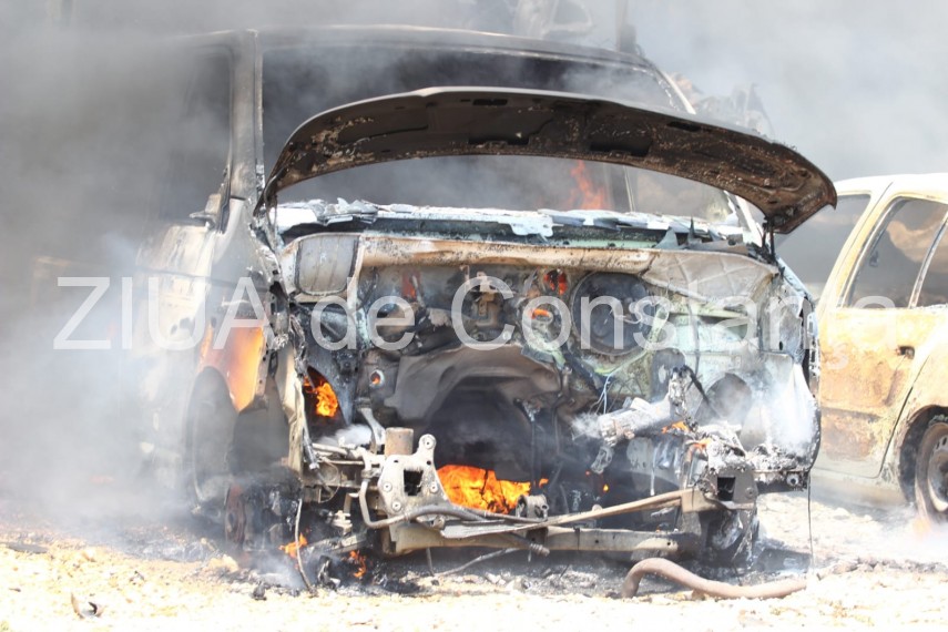 Imagini de la eveniment Incendiu de amploare la Agigea, la parcul de dezmembrări auto. Ce au salvat pompierii din flăcări (galerie foto + video)