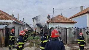 Incendiul arde generalizat, fiind vorba de o casa, parter şi mansardă, cu o suprafaţă de aproximativ o sută de metri pătraţi.