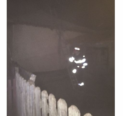 Focul se manifestă la acoperișul casei.