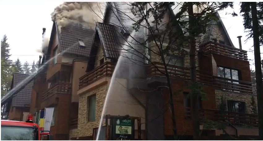 Incendiu la un hotel din Sinaia. Zeci de turiști evacuați. Intervin șase autospeciale. Hotelul are 23 de camere