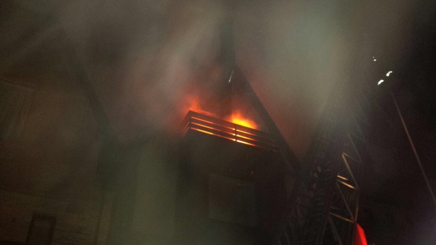 Focul a izbucnit, la etajul trei al imobilului și ar fi izbucnit, probabil de la șemineul uneia din camere, și s-a propagat pe o suprafață de circa 150 de metri pătrați de acoperiș.