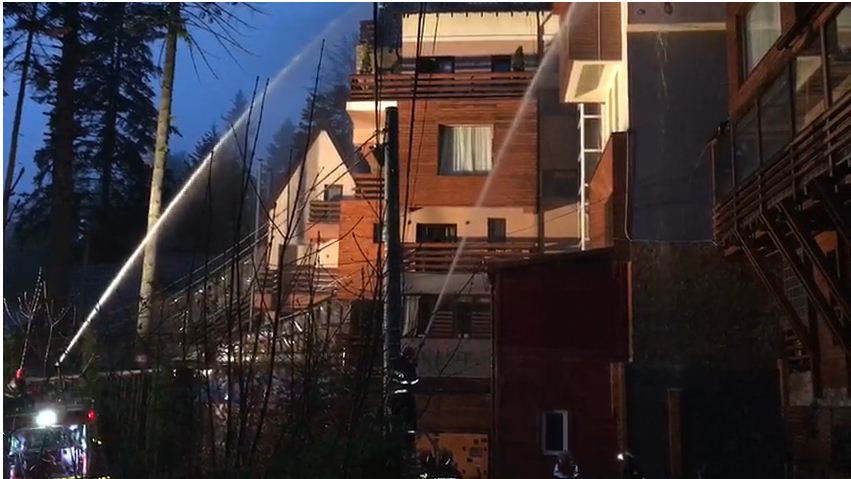 Incendiu la un hotel din Sinaia. Zeci de turiști evacuați. Intervin șase autospeciale. Hotelul are 23 de camere (galerie foto+video)