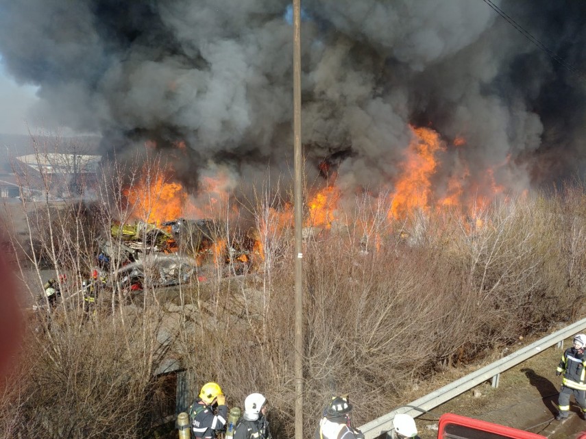 UPDATE. Incendiu la un punct de colectare-reciclare autoturisme. Pericol de extindere. Mai multe autospeciale la faţa locului (galerie foto-video)