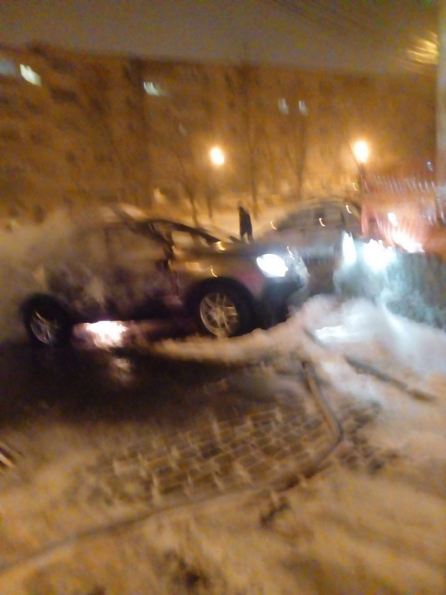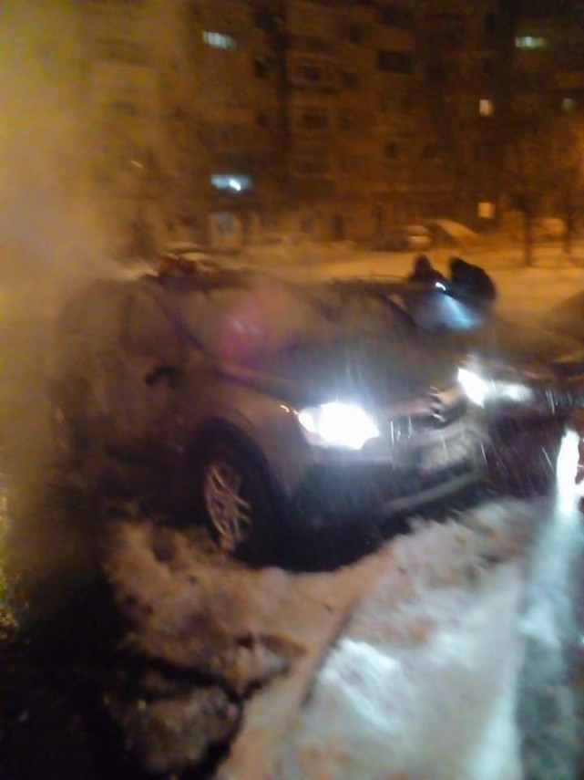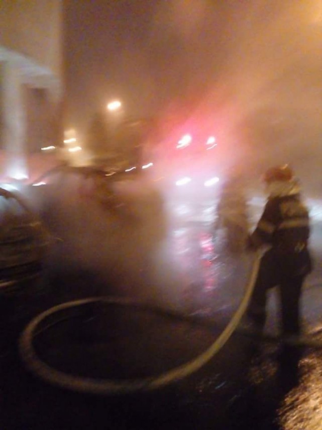 Incendiu violent la Tulcea. O maşină a fost cuprinsă de flăcări. Focul s-a extins şi la autoturismul parcat în apropiere (galerie foto)