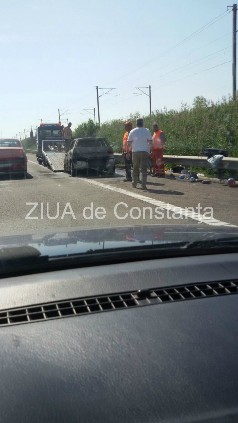Începe week-endul. Cu accidente pe drumul litoralului. În această dimineaţă pe Autostrada A2. Maşină în flăcări (galerie foto)