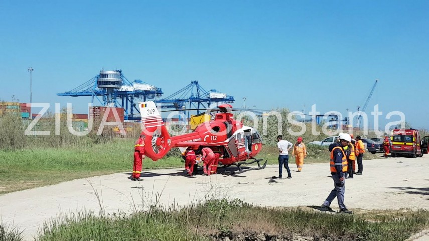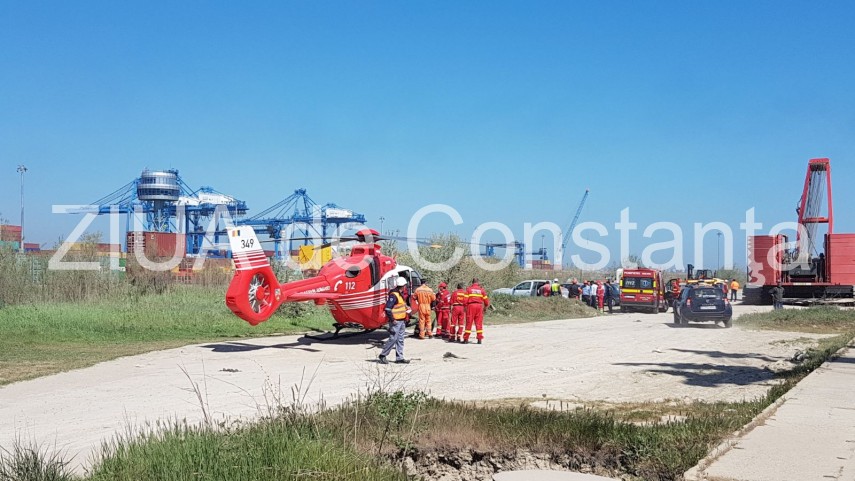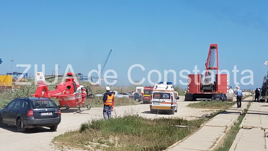 Imagini de la eveniment Incident în Dana 128 - Agigea. Un braț de macara s-a rupt. Trei victime. Intervine elicopterul (galerie foto+video)