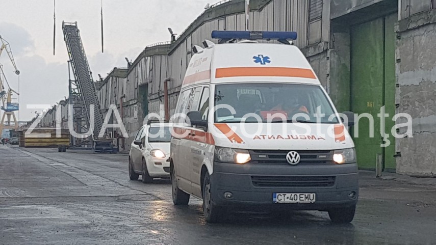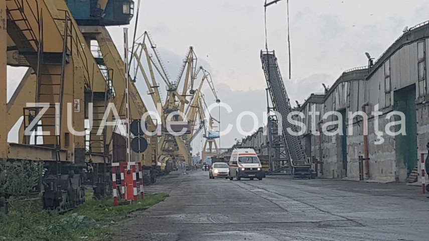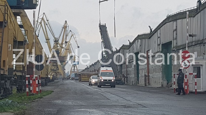 UPDATE.Imagini de la eveniment. Incident în Portul Constanța. O persoană a căzut de la o înălțime de 5-6 metri. Victima, un marinar sirian (galerie foto+video)