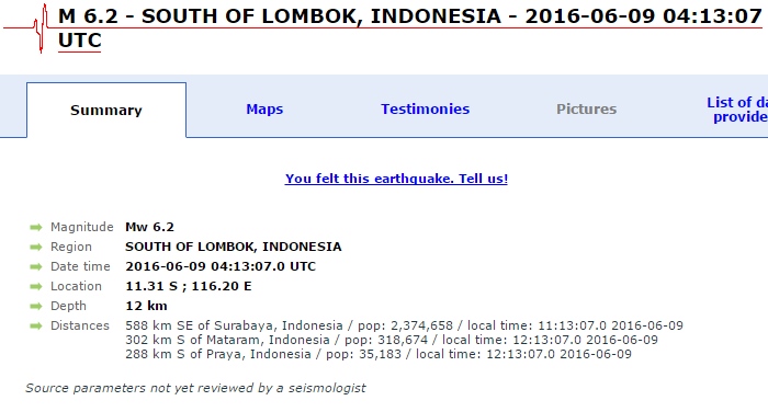 Un seism cu magnitudinea de 6,2 a avut loc în insula Lombok, Indonezia, în această dimineaţă. Acesta s-a produs la o adâncime de 12 km. Momentatn, nu au fost raportate pagube sau victime.
