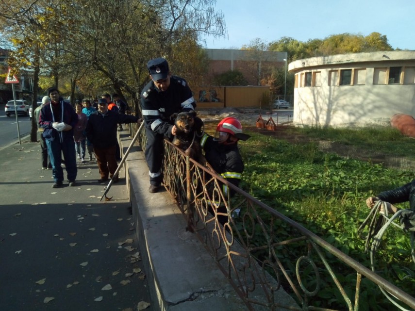 Cinci subofițeri au fost solicitați să intervină pentru scoaterea unui câine căzut într-un canal de colectare a apelor pluviale din municipiul Tulcea. Deși pompierii au intrat prin nămol pentru a-l salva, cățelul speriat și-a arătat "recunoștința" mușcându-şi salvatorul de mână și cască. În final, după ce a fost scos teafăr, câţelul a fugit.