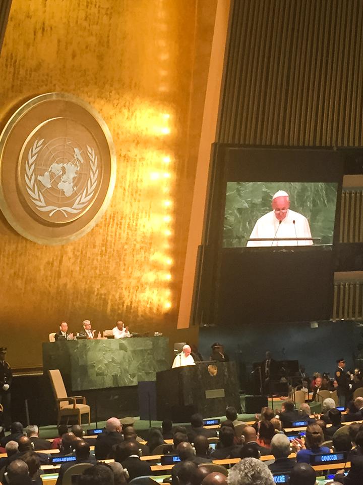 „Am asistat astăzi, la Adunarea Generală a Națiunilor Unite, la discursul Papei Francisc, un lider spiritual autentic, un om cu viziune și atașament special față de valorile umanității. Papa Francisc a dovedit în toți acești ani ai pontificatului său că smerenia și grija pentru cei din jur nu se proclamă, ci se trăiește în fiecare zi prin fapte și prin comportament. Tot astăzi, s-a adoptat în cadrul Summitului ONU, Agenda de dezvoltare post-2015, pentru că este important să știm nu doar cum vrem să arate lumea în care trăim noi, ci mai ales ce lăsăm celor care vin după noi”, a scris Klaus Iohannis, pe pagina personală de Facebook.