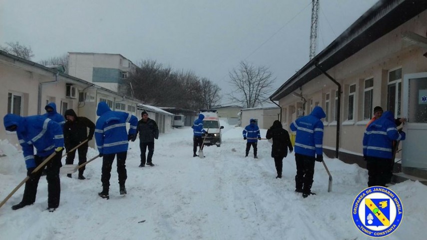 Jandarmii Grupării Mobile Tomis Constanţa au ajutat la deszăpezire la sediul Serviciului de Ambulanţă Judeţean