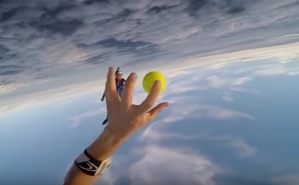 Joacă cu o minge de tenis la 4.000 de metri în aer (video)