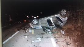 Județul Constanța. Accident rutier. O mașină răsturnată