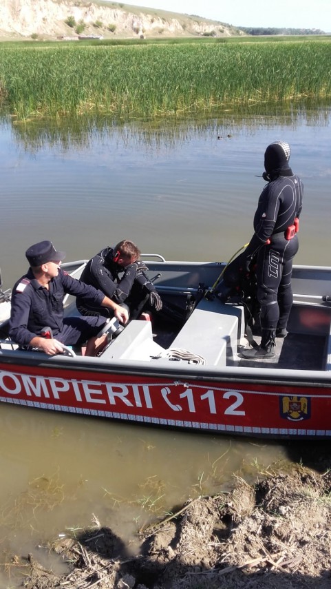 Opt scafandrii cu 2 autospeciale au ajuns la locul intervenției. La fața locului mai sunt șapte pompieri care caută de pe mal.