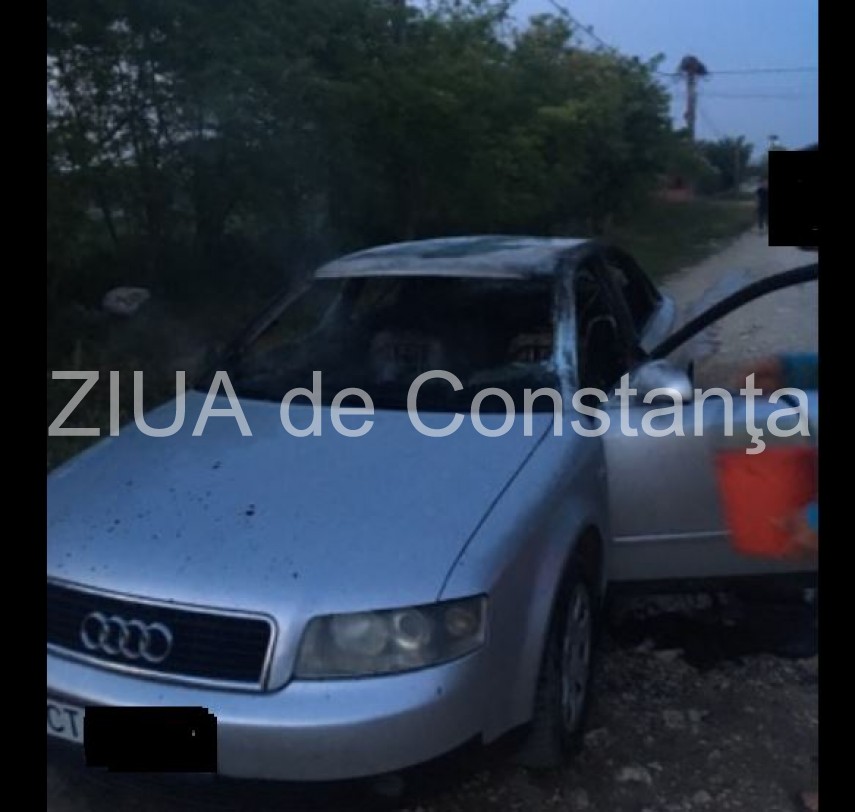 Judeţul Constanţa. Scandal între un patron şi un sătean. Maşina săteanului distrusă cu o fumigenă pirotehnică (galerie foto)