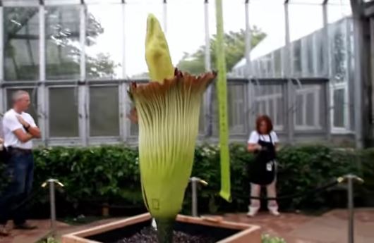 Planta tropicală Amorphophallus titanum care creşte în această Grădină Botanică nu a ajuns încă la punctul ei maximal de inflorescenţă, după cum spun cei de la Reuters. Din acest motiv, administratorii americani au luat decizia ca grădina să rămână deschisă până la ora locală 02.00 şi în noaptea de miercuri spre joi, pentru ca un număr cât mai mare de vizitatori să aibă posibilitatea de a admira această plantă. Florile acestor plante rămân complet deschise pe durate foarte scurte, cuprinse între 24 şi 36 de ore.Florile plantei Amorphophallus titanum nuanţe de galben pal şi verde şi petale colorate la baza lor în nuanţe de roşu închis şi emit un miros persistent, de carne în putrefacţie. Acel miros special are scopul de a atrage insectele polenizatoare, care ajută planta să se reproducă.