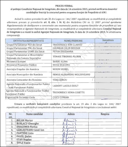 Lista celor ce vor să fie preşedinte al Agenţiei Naţionale de Integritate (ANI). Printre candidaţi este şi o femeie