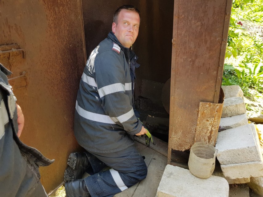 Misiune a pompierilor de la Stația Midia: Cățel, căzut într-o fosă septică (galerie foto)