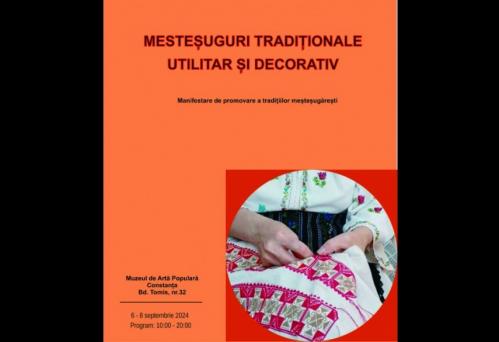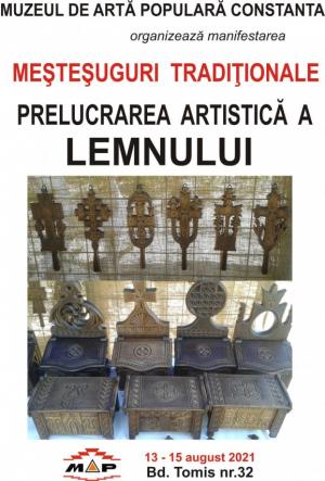 Muzeul de Artă Populară Constanța va desfășura în perioada 15-17 august manifestarea „Meștuguri tradiționale-prelucrarea artistică a lemnului.“Acțiunea urmărește să pună în valoare principalele aspecte legate de arta prelucrării lemnului, continuitatea și evoluția artistică a acestui meșteșug strămoșesc.