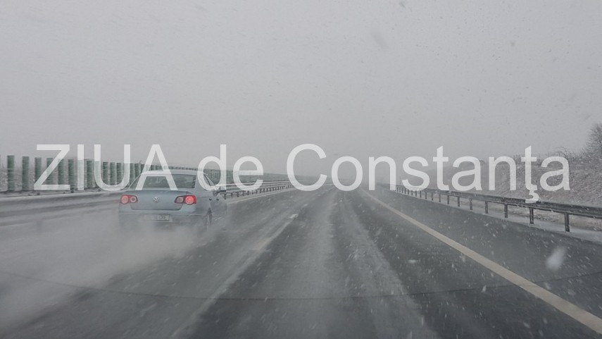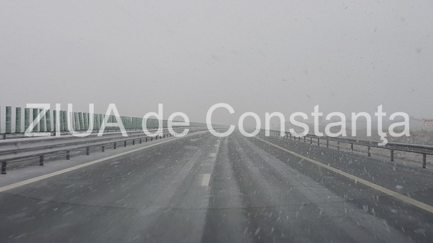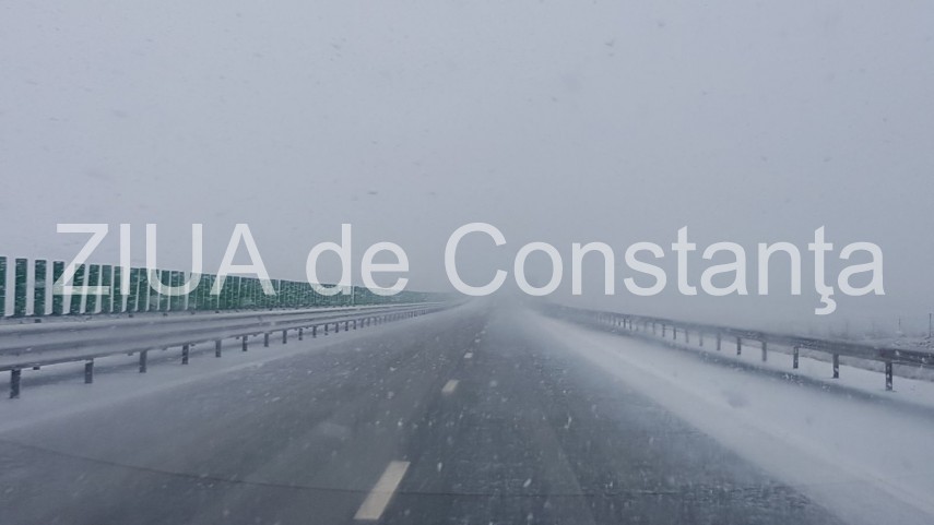 Ninge în județul Constanța. Pe mai multe drumuri, printre care și Autostrada Soarelui s-a depus strat de zăpadă