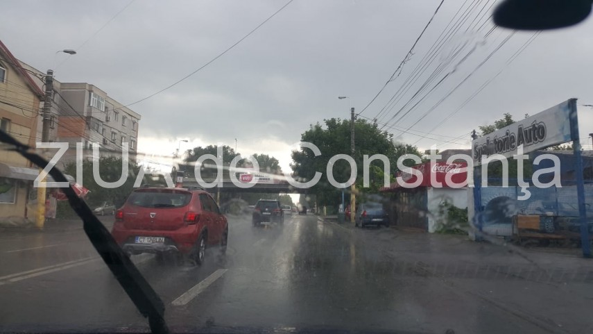 Plouă torențial pe bulevardul I.C.Brătianu, la ieșire din municipiul Constanța. Meteorologii au emis cod galben pentru județul constanța valabil până astăzi, ora 23.00.Potrivit ANM, vor fi averse ce vor avea și caracter torențial, frecvente descărcări electrice, intensificări ale vântului ce vor lua izolat aspect de vijelie.