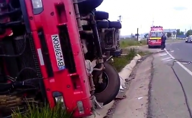 O autoutilitară cu 18 tone de carne s-a răsturnat astăzi în judeţul Braşov, între Săcele și Tărlungeni. Din fericire, nimeni nu a fost rănit, informează România TV.Mașina de transport marfă a ajuns în șanțul de pe marginea drumului.