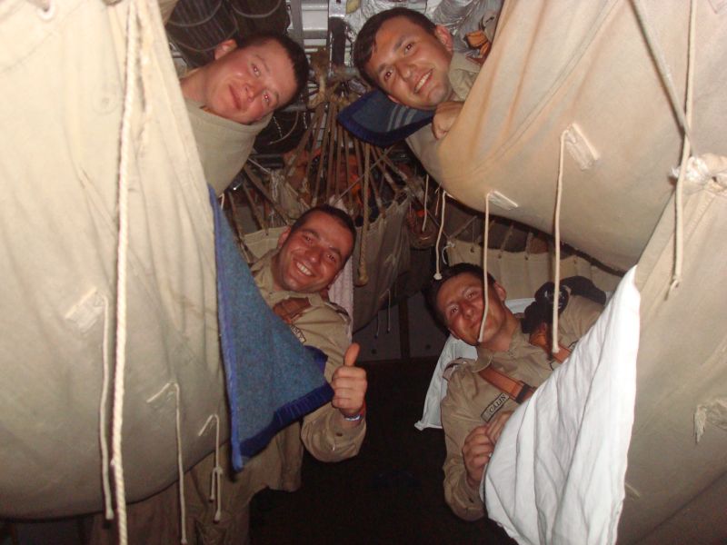 Atât doar că ofițerii și maiștrii dorm în cușete, iar marinarii și cadeții se odihnesc în „confortabile”hamace, din care te scoli ca un semn de întrebare. Condiția fizică este obligatorie și nervii tari, deasemenea. Trasul de parâme, oricând, pe orice vreme, la zeci de metri deasupra mării, pe catarge care se clatină cu o amplitudine care-ți duce stomacul în gât, alături de camarazii tăi, te călesc și-ți formează caracterul. Unul tare. sursa: evz.ro