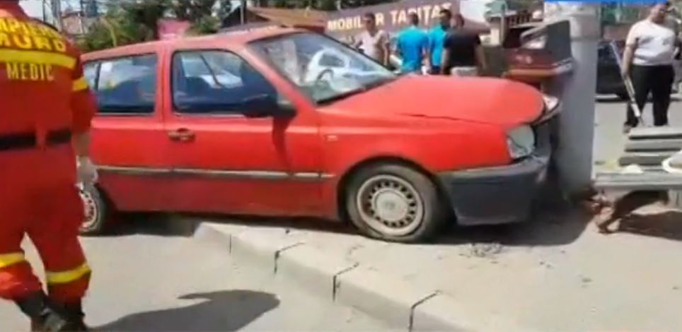 O șoferiță a pierdut controlul volanului și a ajuns pe trotuar. Șapte persoane au ajuns la spital!