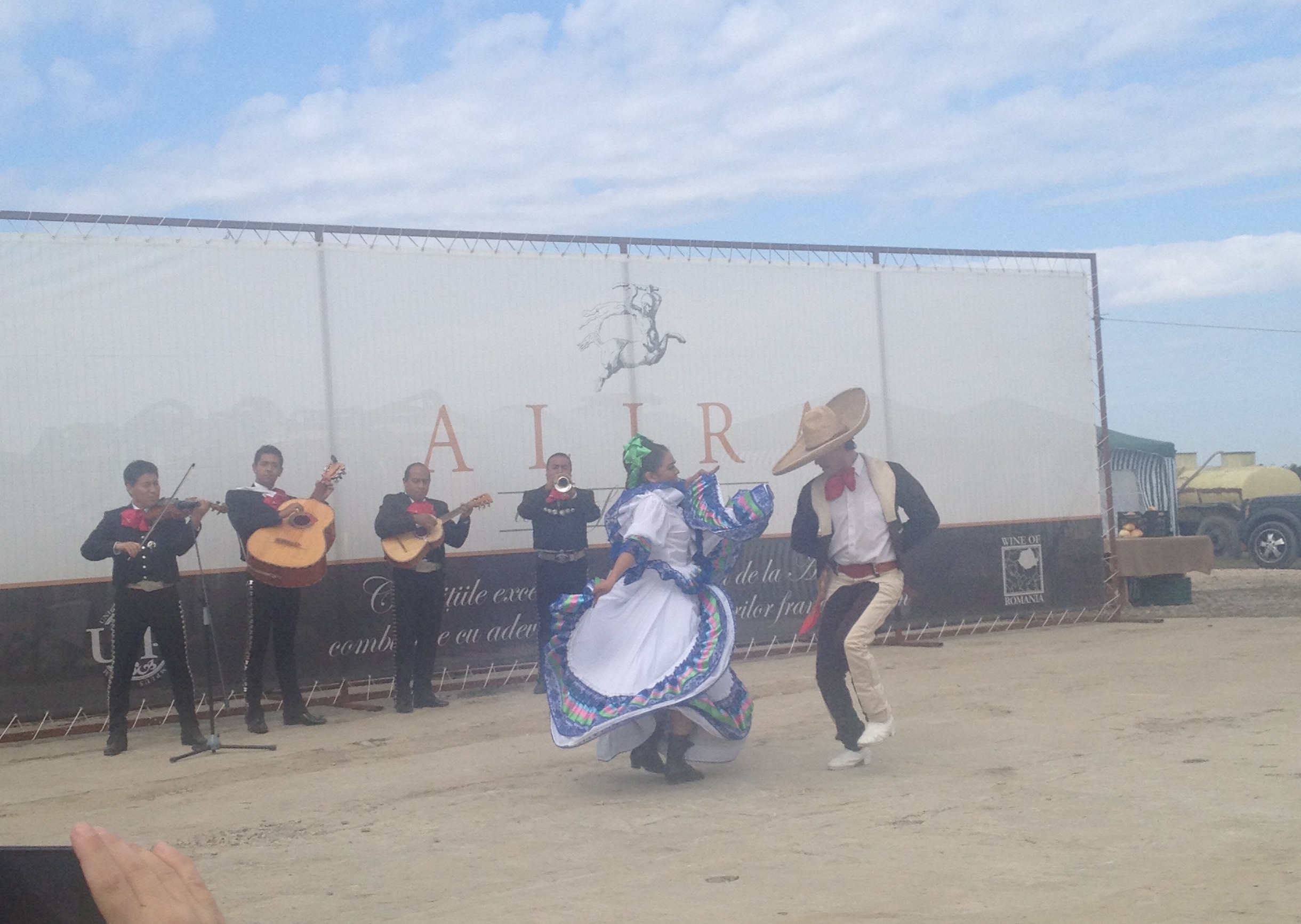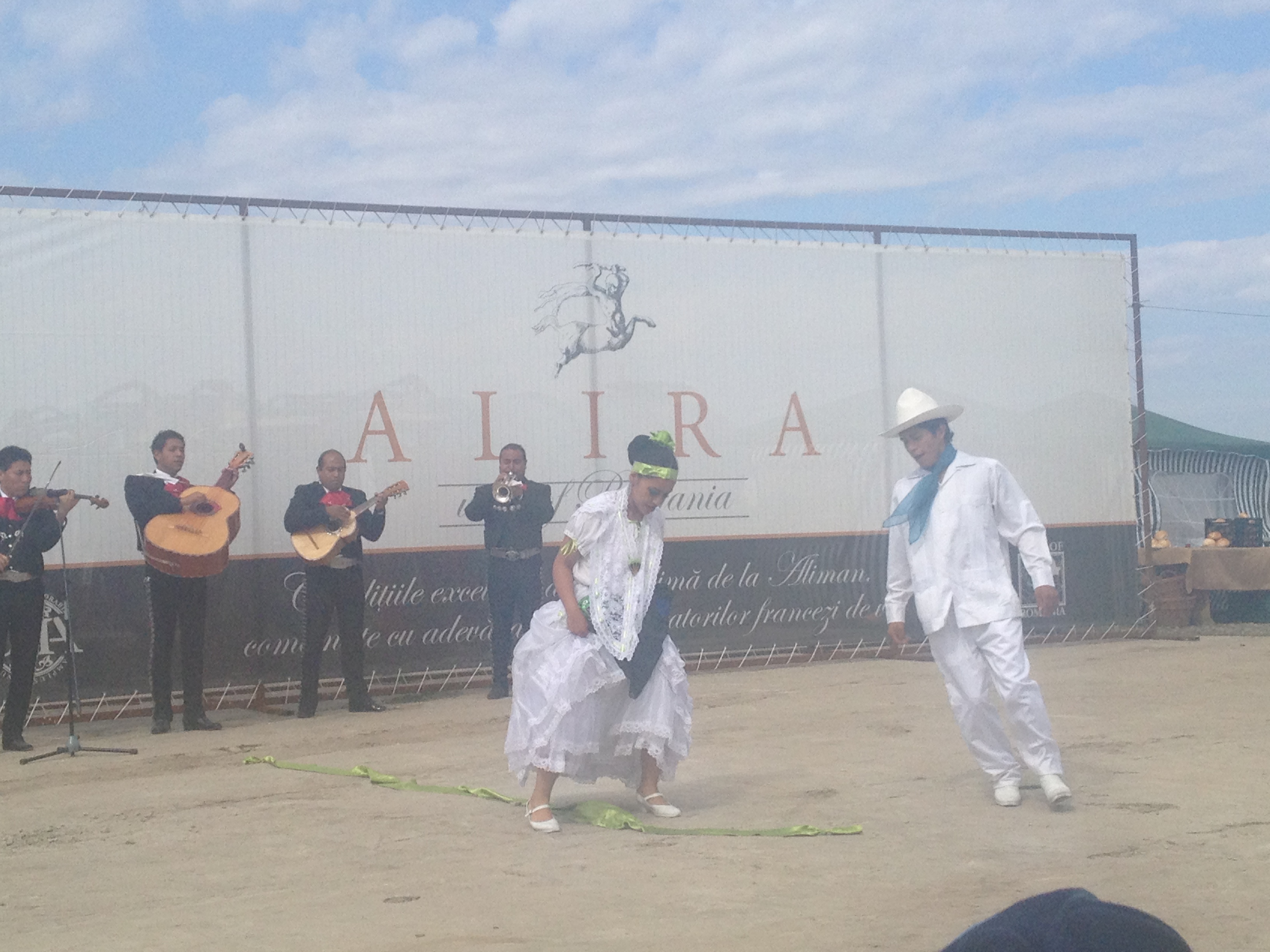 În urmă cu câteva minute a început Sărbătoarea Recoltei la Aliman, eveniment organizat de WineRo. Evenimentul a debutat cu un moment special: cei de la Domeniile Ostrov i-au făcut un cadou şefului cancelariei ambasadorului Mexicului, fiind prezentă aici o formaţie tradiţională din Mexic. La eveniment este prezent şi prinţul Dimitrie Sturdza, care a fost invitat la dans de ansamblul folcloric, alături de şeful cancelariei ambasadorului Mexicului şi de Ghenadie Bobeică, administratorul WineRo.