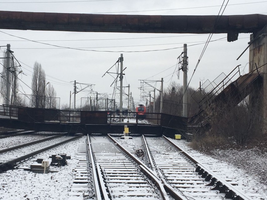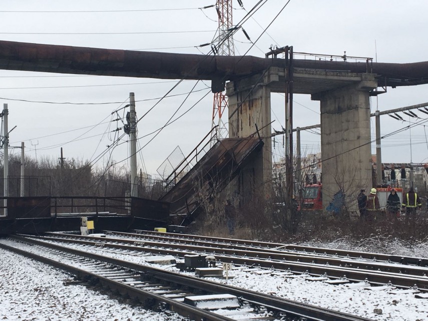 Pasarelă de patru tone, prăbușită peste liniile de cale ferată. Traficul feroviar, blocat (galerie foto +