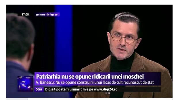 Învitat la emisiunea „În faţa ta", el spus că motivul pentru care biserica nu se opune este pentru că ar fi vorba de un lăcaş de cult recunoscut de stat și că a primit asigurări că nu este vorba de un centru de pregătire al unor lideri islamici.