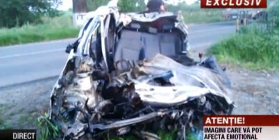 Maşina a devenit un maldăr de fiare contorsionate. Accidentul a avut loc în urmă cu circa 40 de minute, potrivit România TV.