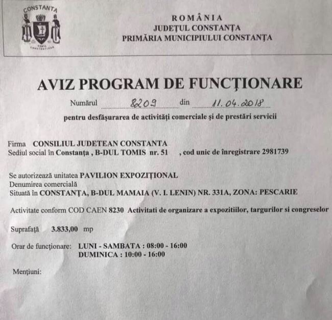 Pavilionul Expozițional Constanța a obținut autorizația de funcționare. Ce prevede documentul